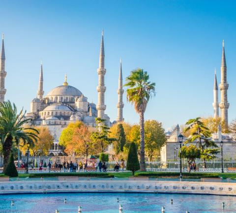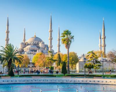 Голубая мечеть в сердце Стамбула пленит своей грандиозностью и изяществом. Более величественной и пышно убранной мечети нет нигде в мире. Шесть её минаретов устремлены в небо, а внутренние стены украшены 20 тысячами изразцов ручной работы.