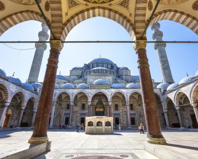Самая красивая мечеть Стамбула — шедевр архитектора Синана. Здание способно вместить до 5 тысяч верующих — это целый комплекс из бань, медресе, кухонь, библиотеки и обсерватории. Во дворе мечети похоронены султан Сулейман и его возлюбленная Роксолана.