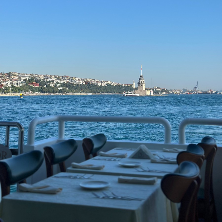 Подышите морским воздухом на открытой палубе, а на закрытой сможете послушать рассказ гида о достопримечательностях за бортом и пообедать традиционными блюдами турецкой кухни.