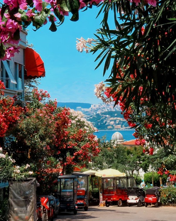 - Путь на вершину. По желанию воспользуемся электромобилем и поднимемся к монастырю Святого Георгия Кудунского, который расположен на вершине холма. С него открывается невероятный вид на остров, море и Стамбул — отличное место для фотографий