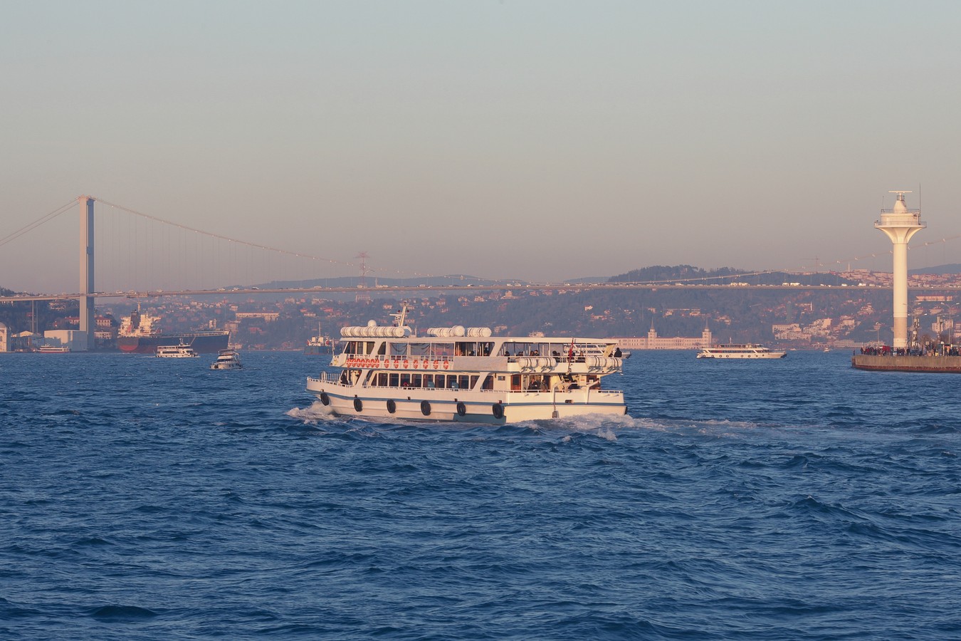 Прогулка на теплоходе (2 часа). Вы увидите с воды три дворца: Чыраган, Долмабахче и Топкапы. А также Девичью башню, крепость Румели Хисар, мосты, элитные районы города и мечеть Ортакёй.