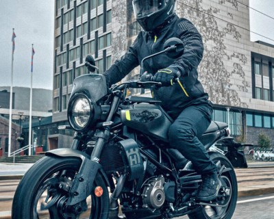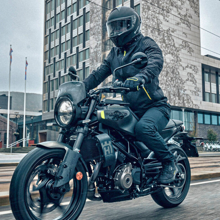 - Поездка проходит на мотоцикле Husqvarna Svartpilen 250