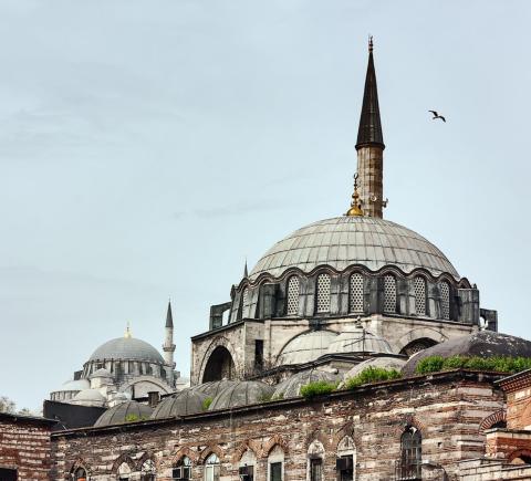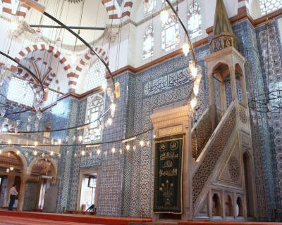 - Исследуете мечеть Рустема-паши 1561 года постройки. Архитектором мечети был Синан, который за 4 года до этого построил мечеть Сулеймание. У мечети один минарет, внутри она хорошо освещена, а пол выложен коврами.