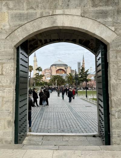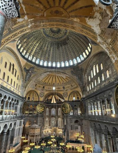 Айя-София, или собор Святой Софии. Bыдающийся памятник византийской и мировой архитектуры, символ «золотого века» Византии, который иногда называют «восьмым чудом света». Вы услышите о том, как менялся статус собора в разные времена и как в нём соседствуют две религии: христианская и мусульманская.