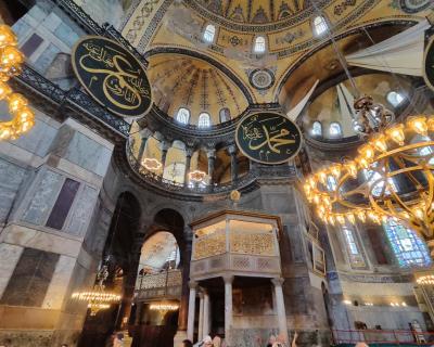 - Айя-София, построенная ещё во времена правления Юстиниана. Гид объяснит, как мечети удалось сохраниться до наших дней, несмотря на землетрясения.