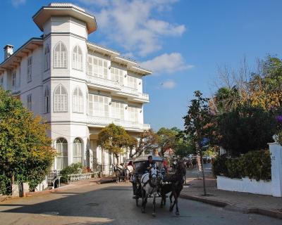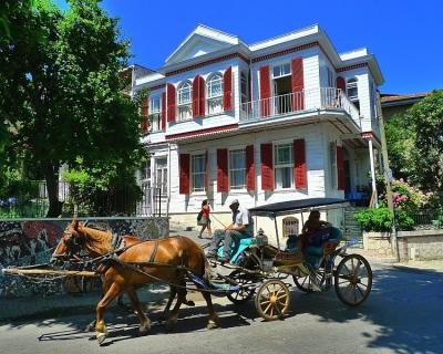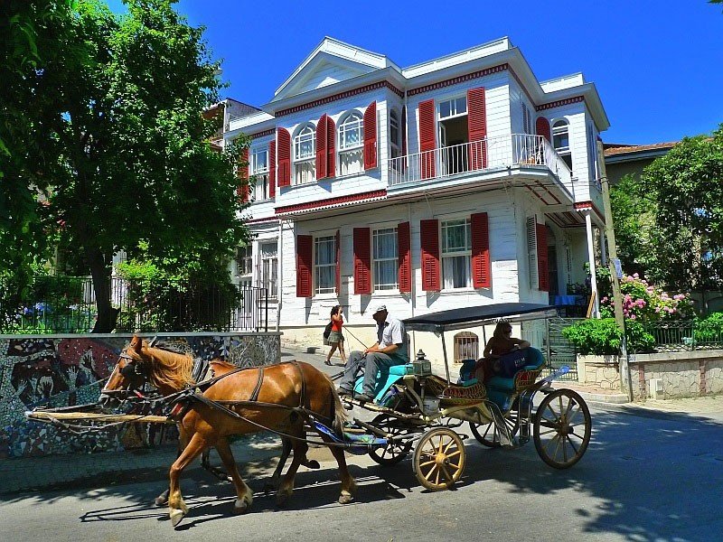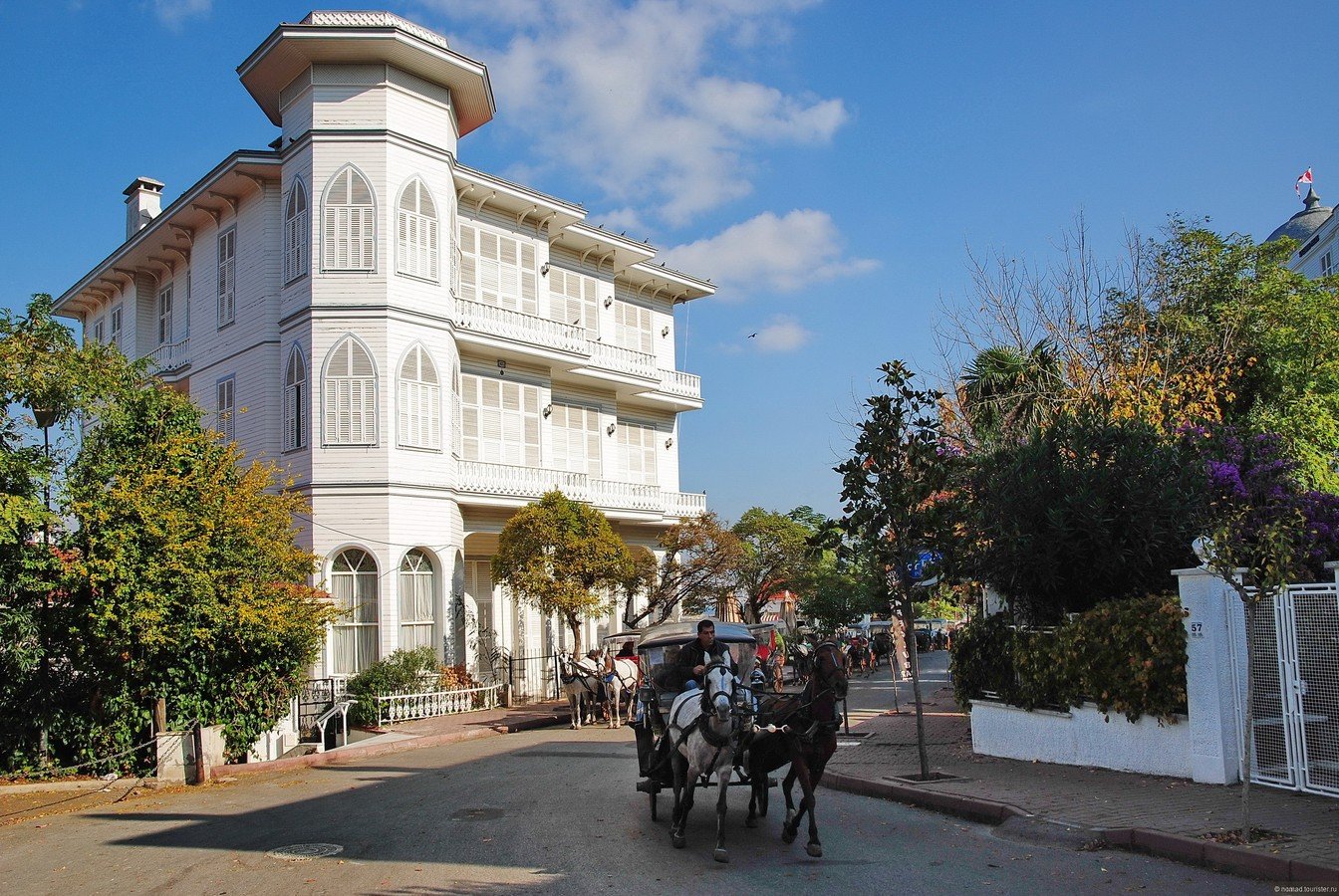 Первая остановка — самый большой остров архипелага — Бююкада. Здесь запрещен любой транспорт, кроме гужевых повозок. По желанию вы сможете арендовать конный экипаж или велосипеды. Или мы отправимся на пешеходную прогулку: вы подниметесь на самый высокий холм острова, откуда открываются великолепные панорамы. Рассмотрите архитектуру острова — многочисленные современные особняки и типичные дворцы османской эпохи. Вы узнаете, в каком доме жил Троцкий, изгнанный из СССР, и прогуляетесь по живописным улочкам и таинственным местам Бююкады.
