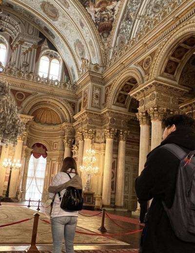 Минуя очереди, мы пройдем во дворец Долмабахче. Его комплекс красуется у пролива Босфор и поражает великолепием еще издалека. Здесь классицизм и барокко тесно переплелись с деталями османской архитектуры — я помогу вам разобраться, что откуда. Любуясь богато украшенными залами и их не менее богатыми коллекциями хрусталя, фарфора, картин и других бесценных вещей, вы послушаете о хозяевах дворца и их быте.