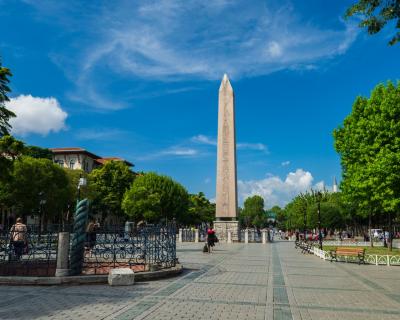 1️⃣ Площадь Султанахмет (Ипподром) — традиционное место начала экскурсий в Стамбуле. Вы представите византийский ипподром на этом месте и узнаете, как проходили его раскопки, а ещё вспомните крестоносцев. На площади вы увидите Египетский обелиск (это древнейшая постройка в Стамбуле), Змеиную колонну (почему она является символом победы?) и обелиск Константина (в честь кого он построен на самом деле?).