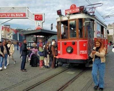 - Мы проедем на фуникулёре 19 века, а точнее подземном подъёмнике, похожем на лифт, до улицы — к Галатской башне. Поднимемся на неё по вашему желанию.