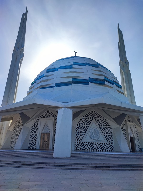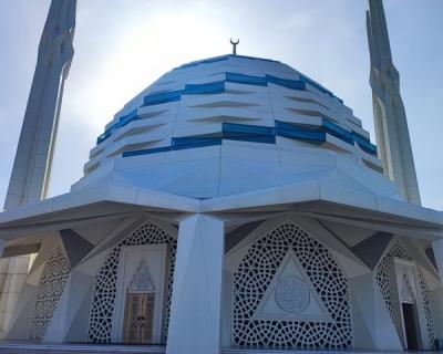 - Прогулку мы закончим посещением одной из самых необычных мечетей города. Несмотря на малый возраст сооружения, она, я уверена, удивит вас своей необычной архитектурой. Это изящное сочетание стали и стекла удивляет как внешним, так и внутренним видами.